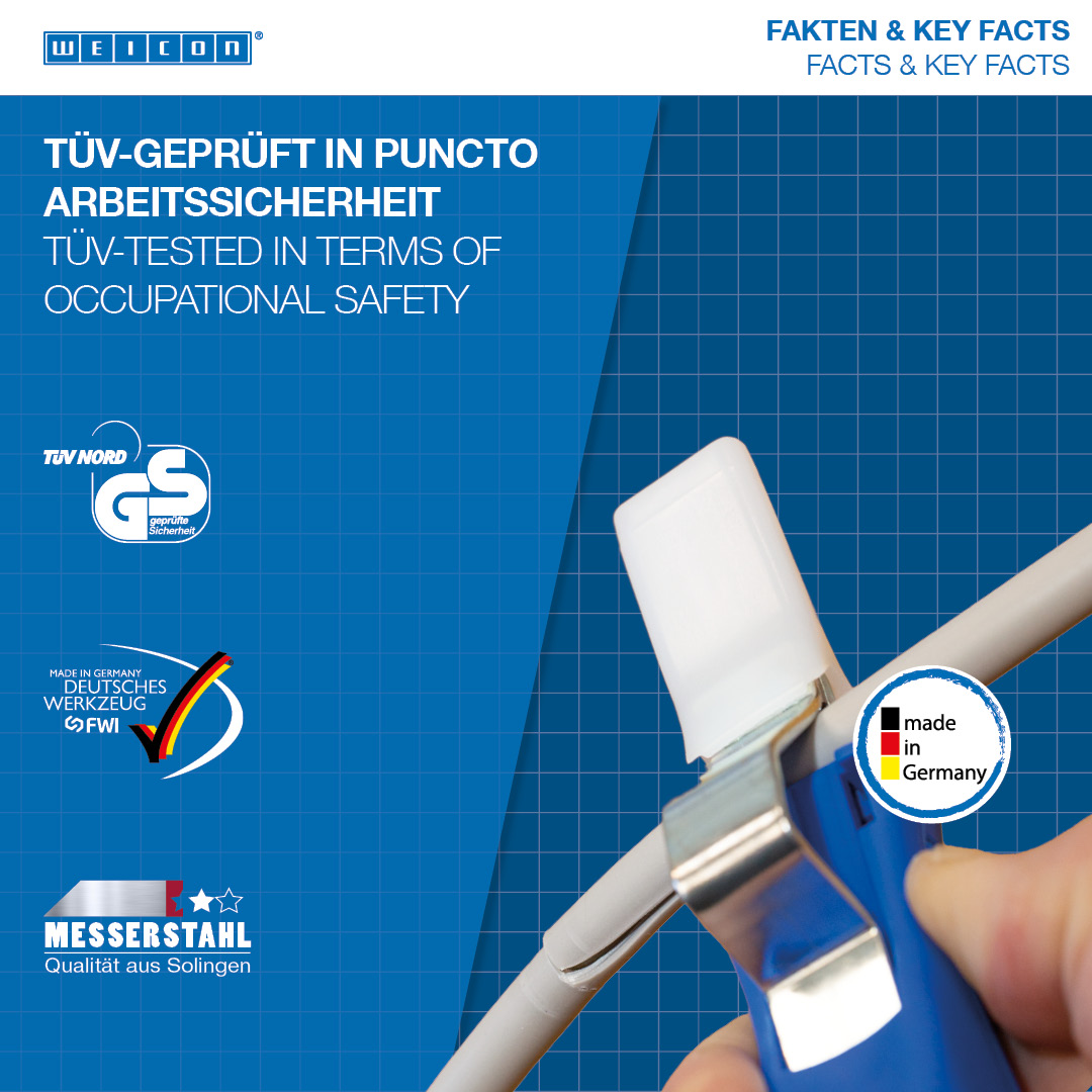 pisau pengait dan tutup pelindung I Roda penyetel yang dapat diubah-ubah dan mudah dioperasikan I Pisau bagian dalam yang dapat berputar I Pengupasan yang tepat, cepat, dan aman I Jangkauan kerja 4 - 28 mm Ø I Gagang multi-komponen dengan bentuk yang ergonomis