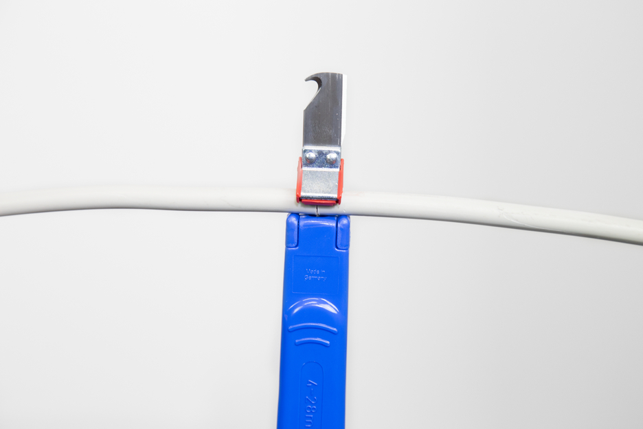 Cable Stripper No. C 4 - 28 H Classic memungkinkan pengupasan yang tepat, cepat, dan aman untuk semua kabel bundar yang umum dengan diameter antara 4 dan 28 milimeter. Berkat sekrup pengatur di bagian belakang gagang, kedalaman pemotongan dapat disesuaikan dengan rentang variabel yang tak terbatas. Hal ini mencegah kerusakan pada konduktor bagian dalam. Mata pisau pemotong terintegrasi dalam housing dan dapat berputar sendiri, sehingga memungkinkan penyesuaian otomatis dari pemotongan melingkar ke pemotongan memanjang. Selain itu, Cable Stripper No. C 4 - 28 memiliki mata pisau pengait yang dapat ditutup dengan tutup pengaman. Tutup ini mengunci mata pisau dengan aman, yang secara signifikan mengurangi risiko cedera.