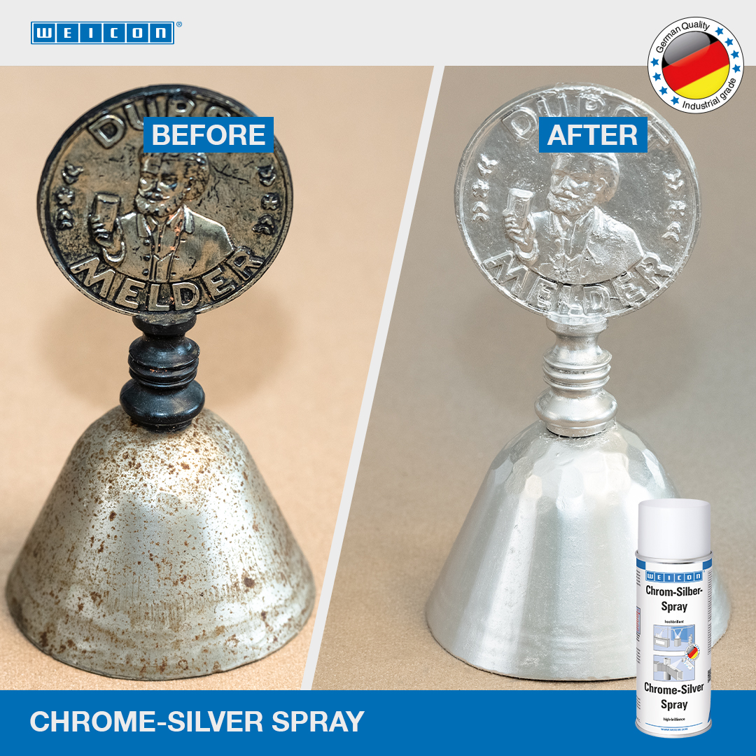 WEICON Chrome-Silver Spray adalah pelapis permukaan yang sangat cemerlang. Formulasi khusus dan kemurnian tertinggi dari pigmen logam menciptakan hasil akhir yang sangat mengkilap. Chrome-Silver Spray dapat digunakan untuk prototipe dan sampel, aplikasi cermin (misalnya reflektor), konstruksi pameran dagang dan pameran, pekerjaan dekoratif yang menarik, dan untuk penyempurnaan optik bahan yang paling beragam.