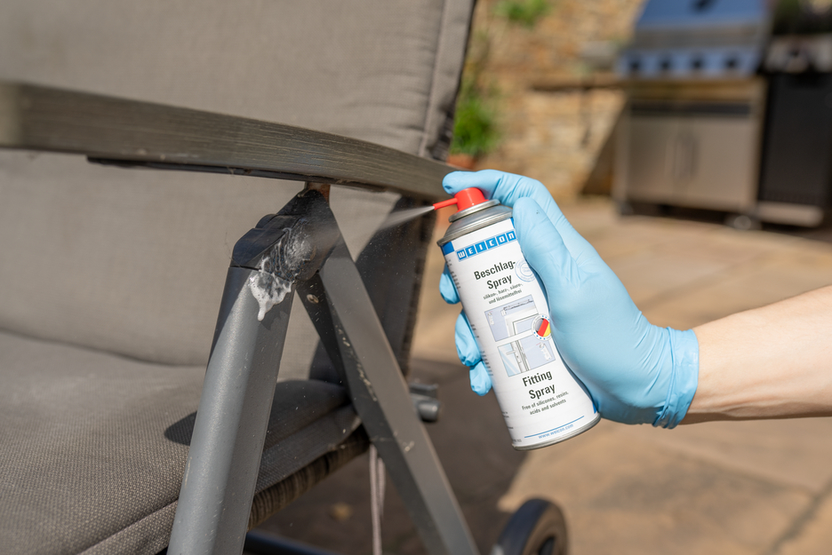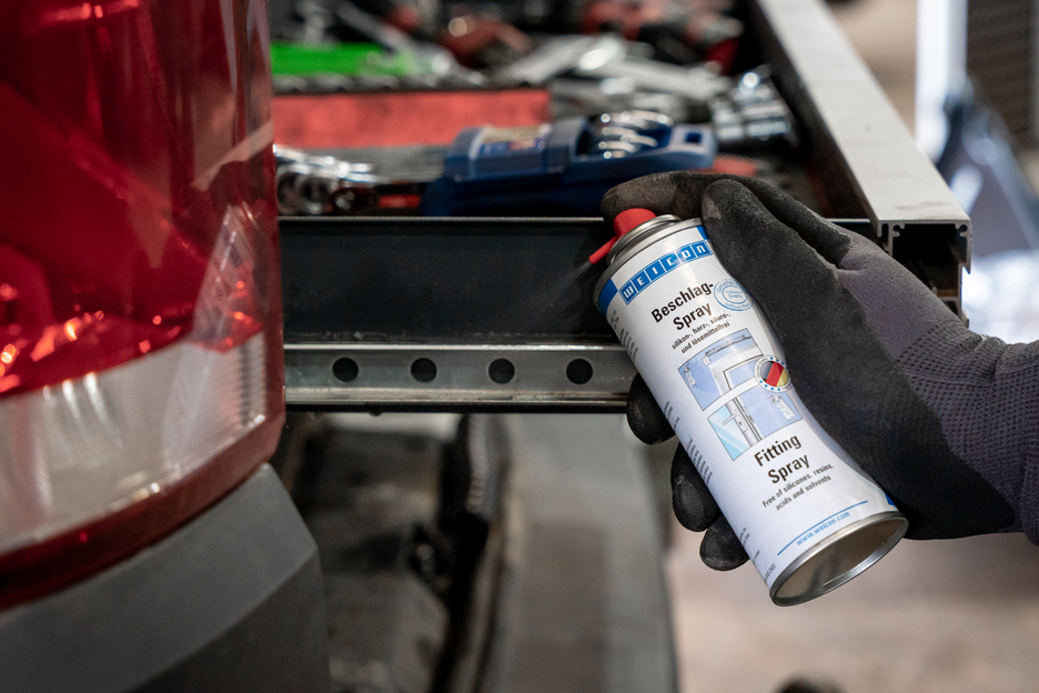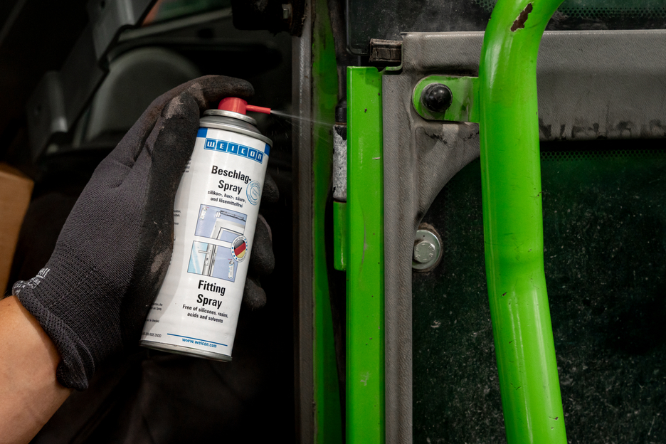 WEICON Fitting Spray adalah produk perawatan dan pemeliharaan dengan kekuatan rekat yang tinggi, yang tidak mengandung silikon, resin, asam, atau pelarut. Berkat aksi kapiler yang sangat baik dan sifat menolak air, WEICON Fitting Spray mengurangi gesekan dan keausan serta menekan suara berdecit. WEICON Fitting Spray tahan terhadap cuaca, melindungi dari korosi dan melonggarkan kotoran. Dapat digunakan untuk pelumasan, servis dan perawatan fitting pada jendela, pintu, gerbang, garasi, tilt-and-turn dan fitting geser serta engsel dan mekanisme penguncian.