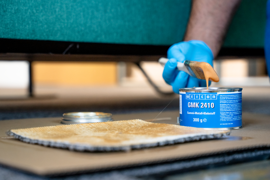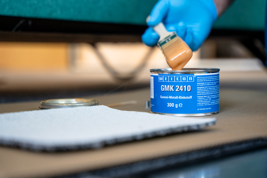 WEICON GMK 2410 adalah perekat yang berbahan dasar polychloroprene (CR) untuk ikatan berkekuatan tinggi, permukaan penuh, dan fleksibel: - karet ke karet - karet ke logam GMK 2410 juga merekatkan karet seluler, busa PE, kulit, kain kempa, bahan isolasi, tekstil, kayu, dan banyak plastik. WEICON GMK 2410 tidak cocok untuk bahan seperti polistiren yang diperluas, polietilena, polipropilena, busa PVC fleksibel, dan kulit PVC buatan.