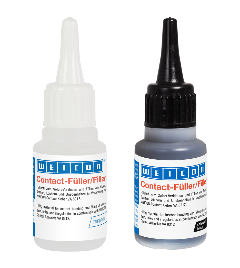Pengisi berbasis silika yang dikembangkan secara khusus untuk perekat sianoakrilat WEICON untuk menutupi celah perekat yang lebih besar lebih dari 0,1 mm serta untuk mengisi retakan, celah, lubang, dan ketidakrataan. Oleh karena itu, pengisi kontak cocok jika dikombinasikan dengan perekat Contact cyanoacrylate tidak hanya untuk pengikatan, tetapi juga untuk memperkuat, membentuk, memodelkan, memperbaiki, mengisi, serta meratakan dan meratakan.