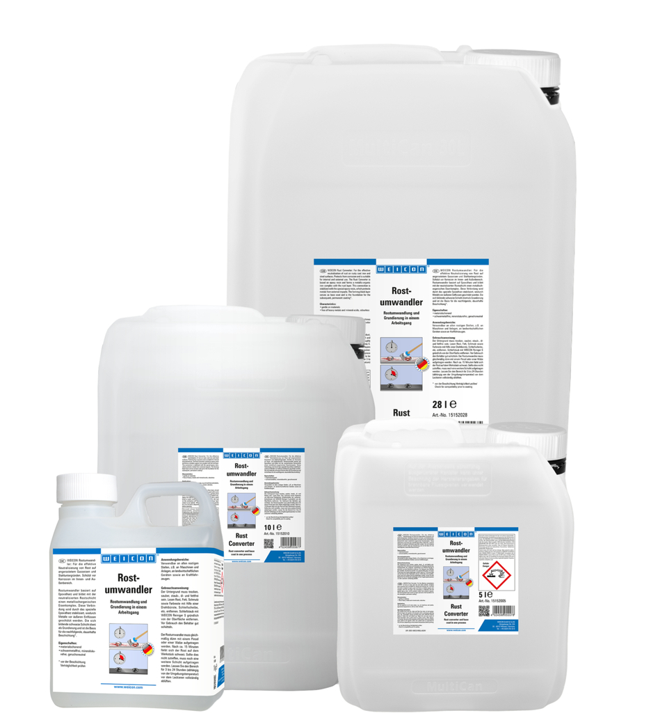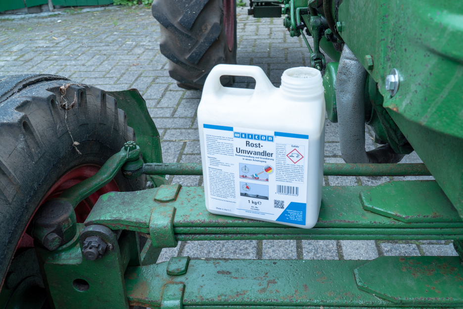 WEICON Rust Converter menetralkan karat pada permukaan besi tuang dan baja yang berkarat. Rust Converter secara andal menghentikan proses korosi dan dengan demikian memberikan lapisan dasar untuk pelapisan permukaan berikutnya. Karena formula khususnya, Rust Converter menembus karat dan mengubah oksida besi menjadi lapisan hitam yang stabil dalam proses kimiawi. Rust Converter dapat diaplikasikan pada semua area yang berkarat, misalnya pada mesin atau di pabrik, pada peralatan pertanian dan juga kendaraan bermotor.