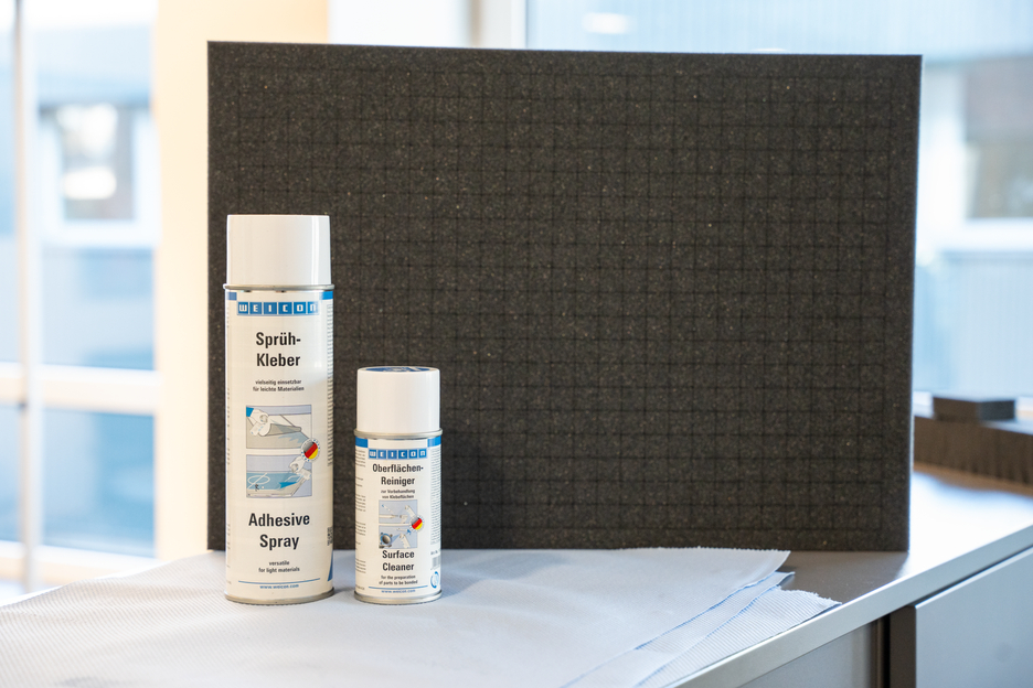 WEICON Adhesive Spray cocok untuk penggunaan serbaguna dan merekatkan bahan ringan. WEICON Adhesive Spray cocok untuk merekatkan berbagai bahan seperti kertas, karton, papan tulis, kayu, veneer tipis, gabus, kulit, tekstil, kain flanel, busa lunak, karet, karet busa, dan film plastik (kecuali PVC dan polietilen). Ini khususnya cocok untuk pengikatan busa keras.