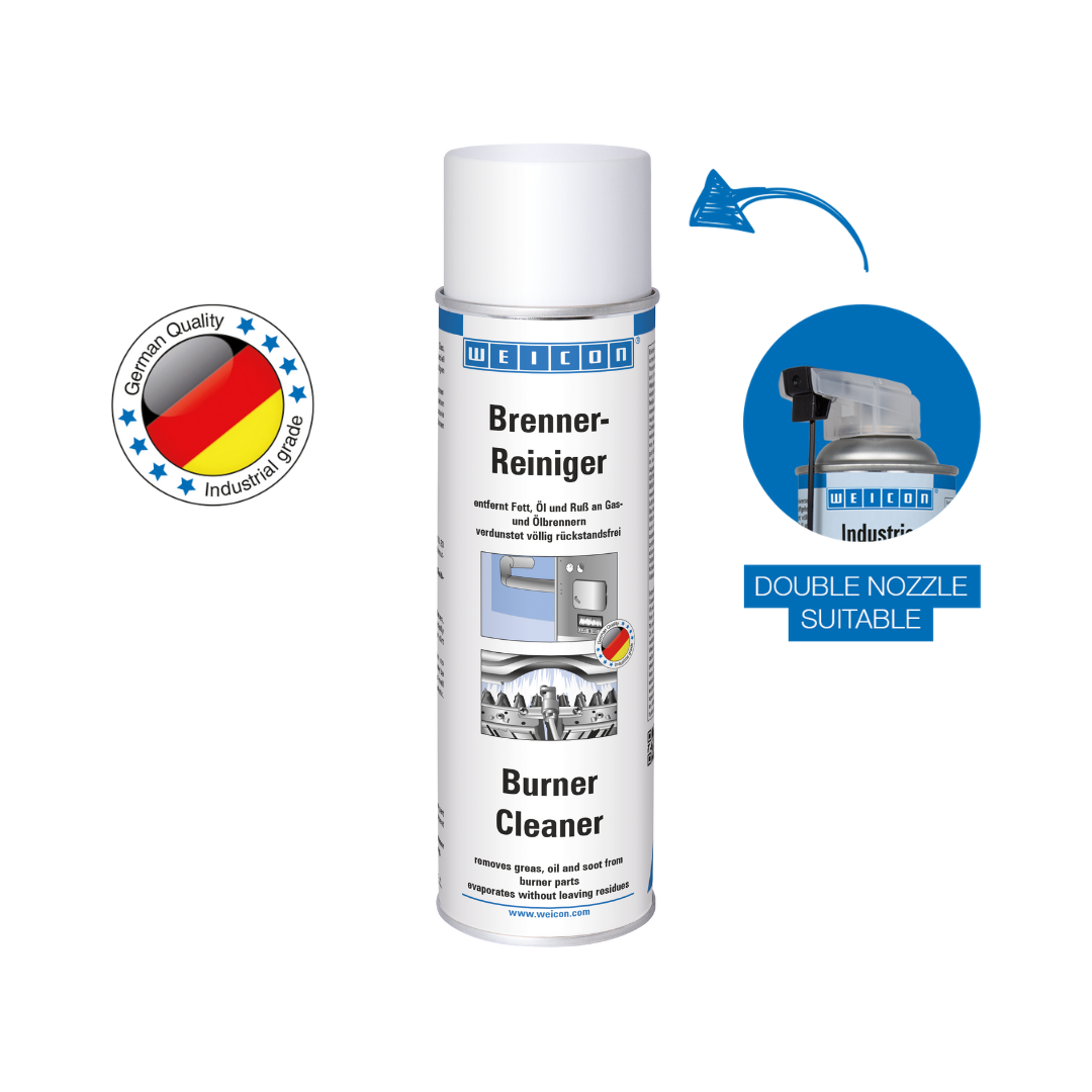 WEICON Burner Cleaner adalah pembersih khusus untuk menghilangkan lemak, minyak, karat dan kotoran lainnya dari bagian burner. WEICON Burner Cleaner menguap tanpa meninggalkan residu. WEICON Burner Cleaner dapat digunakan pada sambungan ledakan, pelat penyekat, roda kipas dan interior rumah, elektroda pengapian, dll.