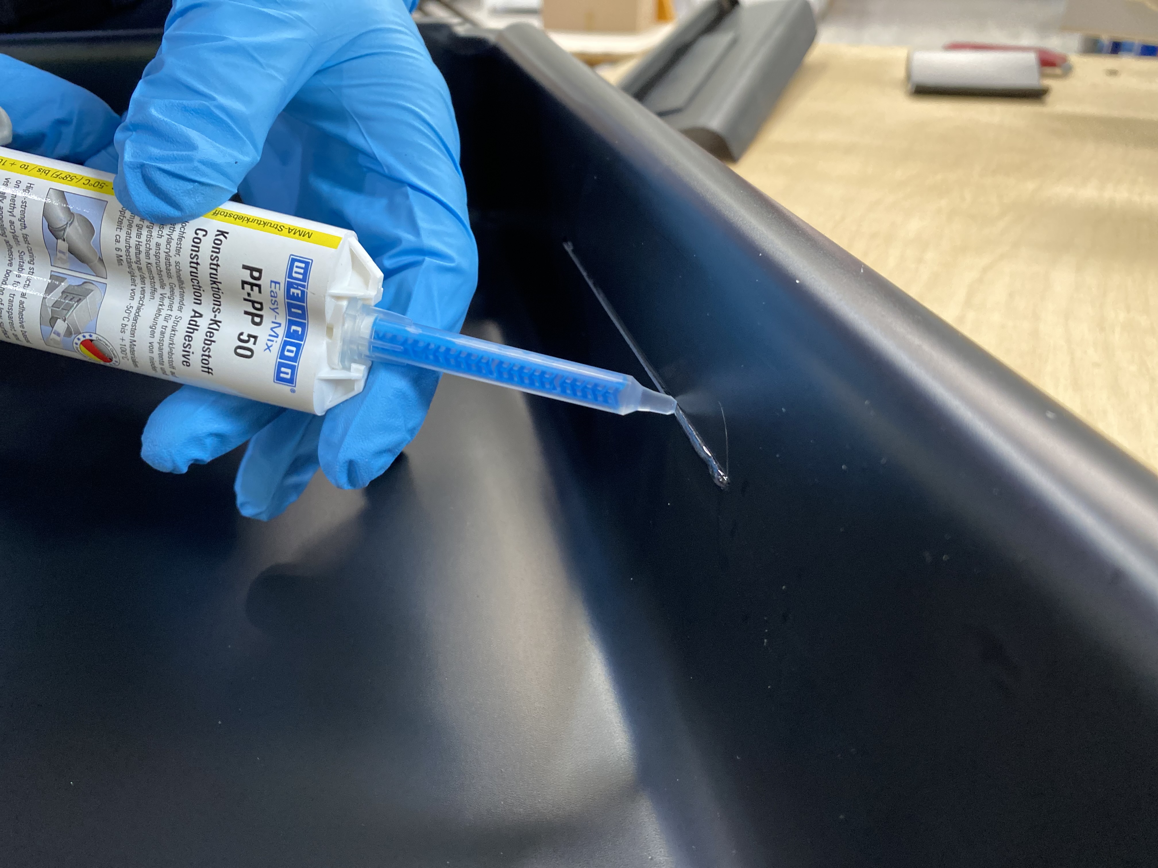 WEICON Easy-Mix PE-PP 50 adalah perekat konstruksi 2 komponen yang berbahan dasar metil akrilat. Karena proses pengeringannya yang transparan, perekat ini sangat cocok untuk ikatan perekat berkekuatan tinggi yang menarik secara visual pada plastik berenergi permukaan rendah, seperti PE, PP, dan TPE. Berkat formula khususnya, perekat ini cocok untuk ikatan tanpa celah dan untuk menyambungkan permukaan dengan celah ikatan yang sangat kecil, kurang dari 0,2 mm. Perekat struktural memiliki peningkatan kekuatan yang cepat dan kekuatan akhir yang tinggi. Perekat ini tahan benturan, tahan penuaan, tahan bahan kimia, dan sedikit tiksotropik; PE-PP 50 memiliki masa pakai pot yang singkat yaitu enam menit dan waktu pemrosesan dua belas menit. Ini diterapkan dengan sistem 1: 1 dan tidak memerlukan pra-perawatan pada permukaan ikatan, karena perekat memiliki primer yang terintegrasi. Untuk aplikasi produk Easy-Mix, diperlukan Dispenser Easy-Mix D 50.