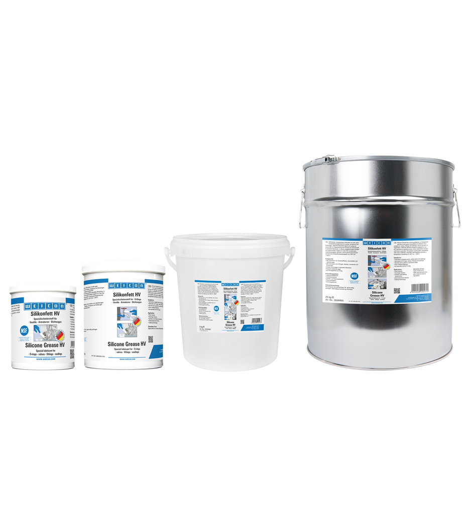 WEICON Silicone Grease HV sangat rekat dan sangat kompatibel dengan plastik. Karena registrasi NSF H1-nya, produk ini cocok sebagai pelumas untuk katup, alat kelengkapan, dan segel di area sensitif. Sesuai dengan Pedoman Penilaian Higienis Bahan Organik yang Bersentuhan dengan Air Minum (Pedoman KTW) oleh Badan Lingkungan Federal Jerman. Dapat digunakan dalam industri makanan dan minuman, dalam konstruksi sanitasi dan pemanas, dalam industri farmasi serta dalam teknologi penyegelan. WEICON Silicone Grease HV telah teruji keamanannya oleh Institut Federal Jerman untuk Penelitian dan Pengujian Bahan (BAM) - lih. selebaran 034-1 "Daftar bahan non-logam untuk digunakan dalam oksigen" (informasi DGUV 213-075) dari BG RCI. Silicone Grease HV ini sangat ramah lingkungan, tidak berbau, tidak berasa, dan memiliki ketahanan suhu -50°C hingga +200°C. WEICON Silicone Grease HV cocok untuk pelumasan komponen plastik, komponen karet dan seal, katup, fitting dan gasket, untuk perangkat dan sistem.