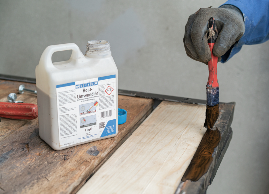 WEICON Rust Converter menetralkan karat pada permukaan besi tuang dan baja yang berkarat. Rust Converter secara andal menghentikan proses korosi dan dengan demikian memberikan lapisan dasar untuk pelapisan permukaan berikutnya. Karena formula khususnya, Rust Converter menembus karat dan mengubah oksida besi menjadi lapisan hitam yang stabil dalam proses kimiawi. Rust Converter dapat diaplikasikan pada semua area yang berkarat, misalnya pada mesin atau di pabrik, pada peralatan pertanian dan juga kendaraan bermotor.