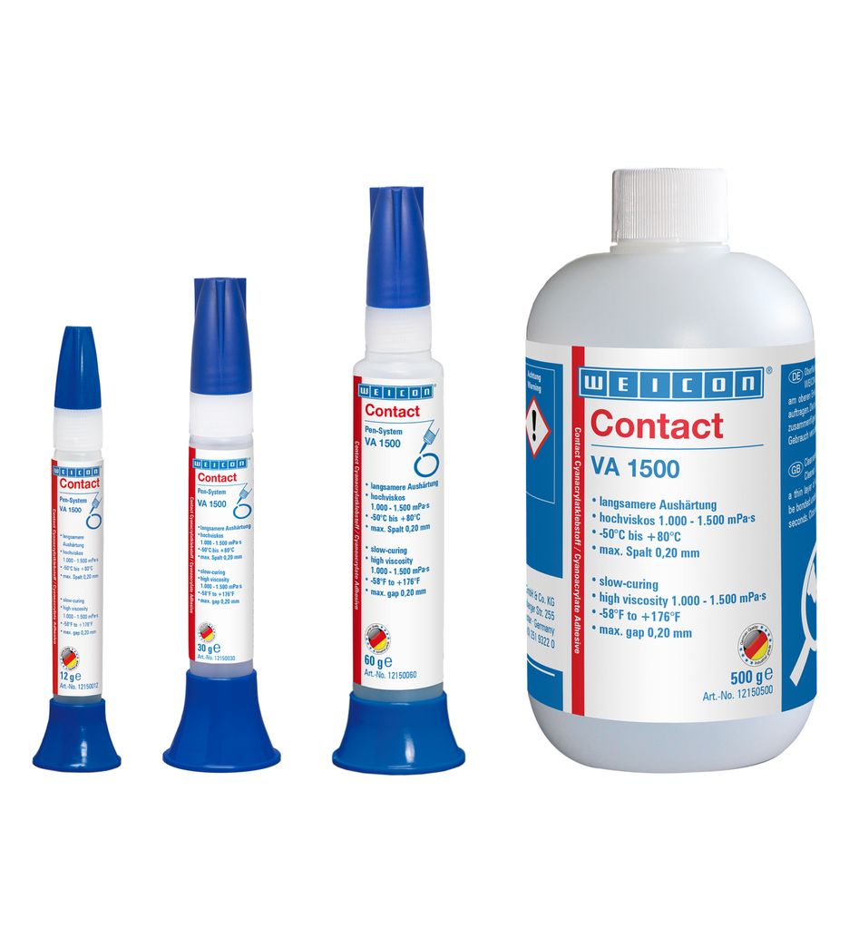 WEICON Contact VA 1500 cocok untuk bahan penyerap dan berpori, seperti kayu, gabus, kulit dan keramik dan juga dapat digunakan untuk ikatan logam, karet dan plastik. VA 1500 dapat digunakan dalam banyak aplikasi industri.