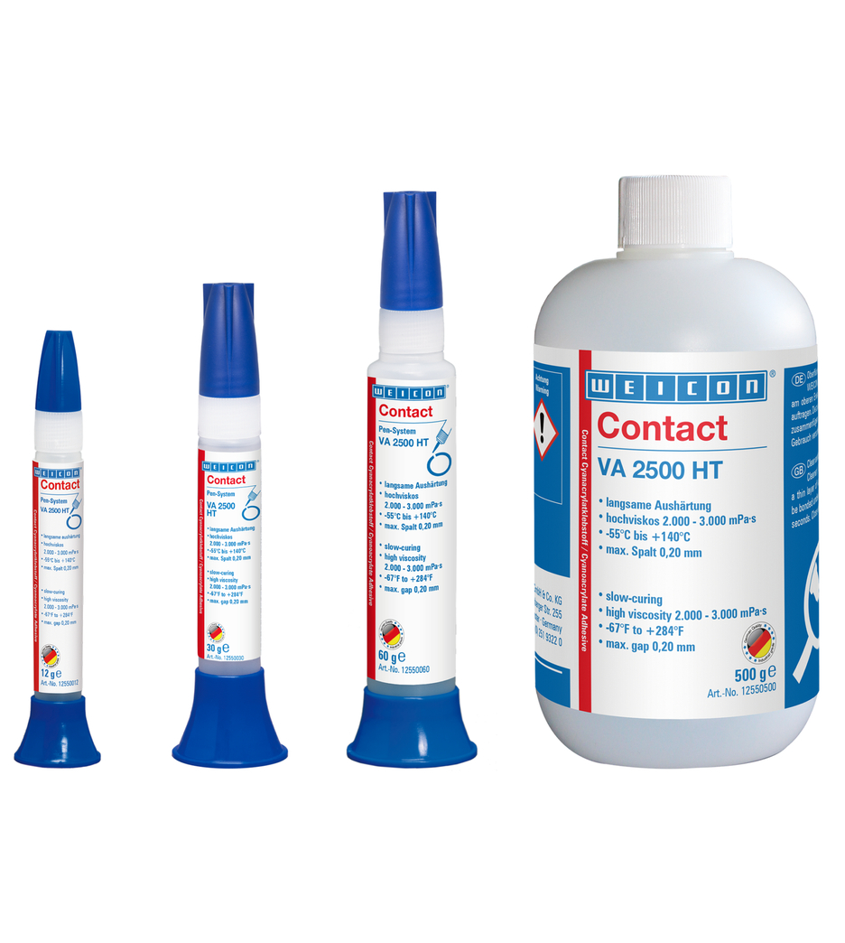 Karena pengawetan dengan elastisitas residual, WEICON Contact VA 2500 HT sangat cocok dalam kondisi iklim yang berubah-ubah. Ini tidak sensitif bahkan terhadap paparan kelembaban yang berkepanjangan. Contact VA 2500 HT cocok untuk pengikatan bahan karet dan plastik yang paling beragam dan juga untuk sambungan logam / plastik. VA 2500 HT dapat digunakan di banyak area industri yang berbeda.