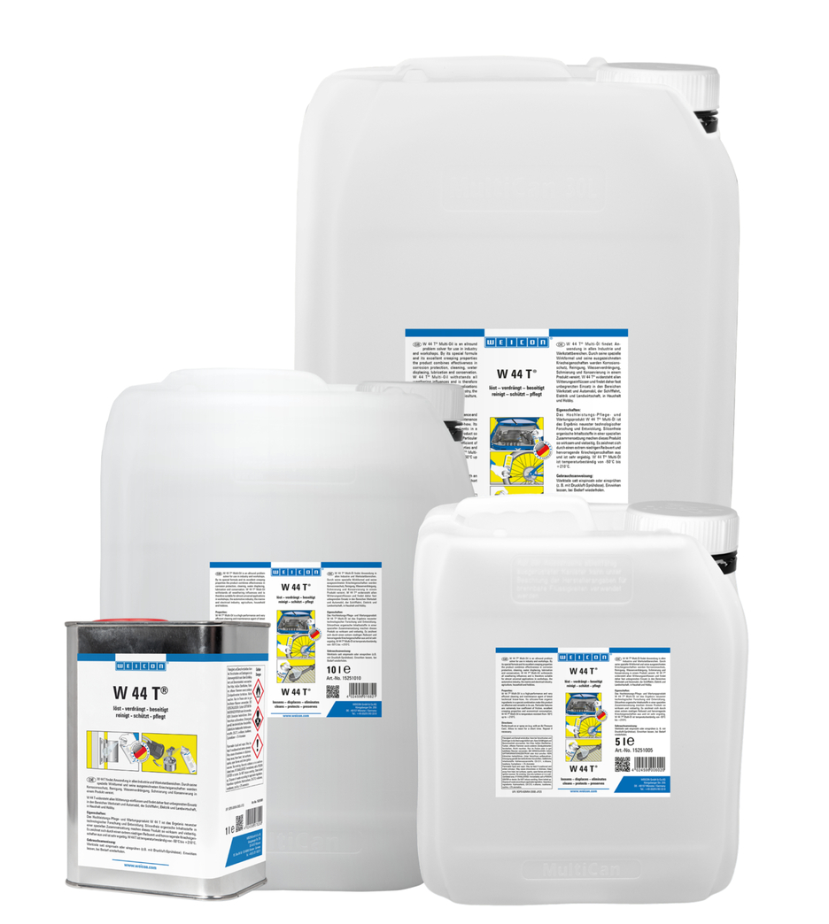 WEICON W 44 T® adalah produk multifungsi yang menggabungkan perlindungan korosi, anti air, pelumasan, konservasi, dan pembersihan dalam satu produk karena formula khusus dan aksi kapiler yang luar biasa. Produk ini melonggarkan sambungan sekrup, baut, fitting dan katup yang tersangkut, serta menembus dan melarutkan karat. Produk ini mengusir kelembapan dari kontak listrik, mencegah arus bocor, dan mempermudah menghidupkan motor yang basah. W 44 T® juga cocok untuk digunakan sebagai cutting oil untuk proses pengeboran dan pemotongan. Oli ini menghilangkan suara berdecit dan berderit pada engsel, pemandu, bantalan, dan semua jenis sambungan dan kopling. WEICON W 44 T® membersihkan permukaan logam yang kotor dan meninggalkan lapisan razorthin yang tahan lama, yang tidak mengotori atau menempel dan tidak menarik debu. Produk ini melindungi dan memelihara semua jenis perkakas, mesin, dan perangkat presisi elektrik dan mekanik.