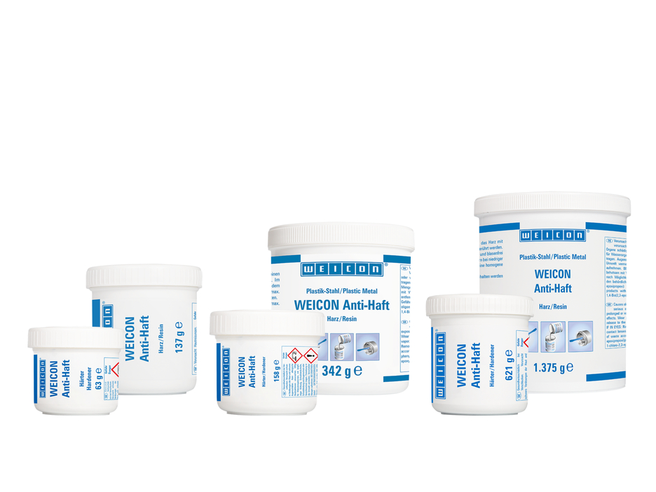 WEICON Anti-Stick adalah sistem resin epoksi 2 komponen berwarna abu-abu cair dengan pengisi mineral untuk melindungi permukaan yang mengalami tekanan berat dari bahan kimia agresif dan korosi. Ini secara khusus dikembangkan untuk aplikasi dengan peralatan bertekanan rendah. Selain pengisi mineral, WEICON Anti-Stick mengandung aditif khusus yang menciptakan efek anti-lengket dan dengan demikian mencegah tepung, debu, atau partikel tersuspensi, misalnya, agar tidak menempel. Sistem resin epoksi memiliki ketahanan kimia dan termal yang baik hingga +120 ° C. Ini bebas dari pelarut dan pengawet dengan hampir tidak ada penyusutan. Lapisan dengan WEICON Anti-Stick, yang memberikan hasil akhir yang sangat halus pada permukaan, meningkatkan kecepatan aliran cairan dan dengan demikian meningkatkan efisiensi pompa, pipa, katup, dll. sebesar 5% hingga 20%. WEICON Anti-Stick diaplikasikan langsung ke komponen dengan sandblasting setelah persiapan substrat secara menyeluruh. Lapisan ini melekat dengan sangat baik pada berbagai macam permukaan dan cocok untuk berbagai macam bagian seperti bantalan biasa, saluran, corong dan pipa serta untuk melapisi coran dan katup. Sistem ini dapat digunakan dalam teknik mesin dan pabrik, dalam teknik peralatan, dalam industri kertas, dalam industri barang curah, dalam sistem gas buang, di pertambangan, di pertambangan terbuka, di pabrik kimia, dan di banyak bidang produksi industri lainnya. Bagaimanapun, tes pendahuluan dalam kondisi praktis direkomendasikan; terutama jika bagian-bagiannya juga terpapar pada peningkatan suhu atau tekanan mekanis. WEICON Anti-Stick cocok digunakan sendiri atau dikombinasikan dengan salah satu jenis logam plastik WEICON lainnya untuk membangun sistem sebagai lapisan anti lengket.