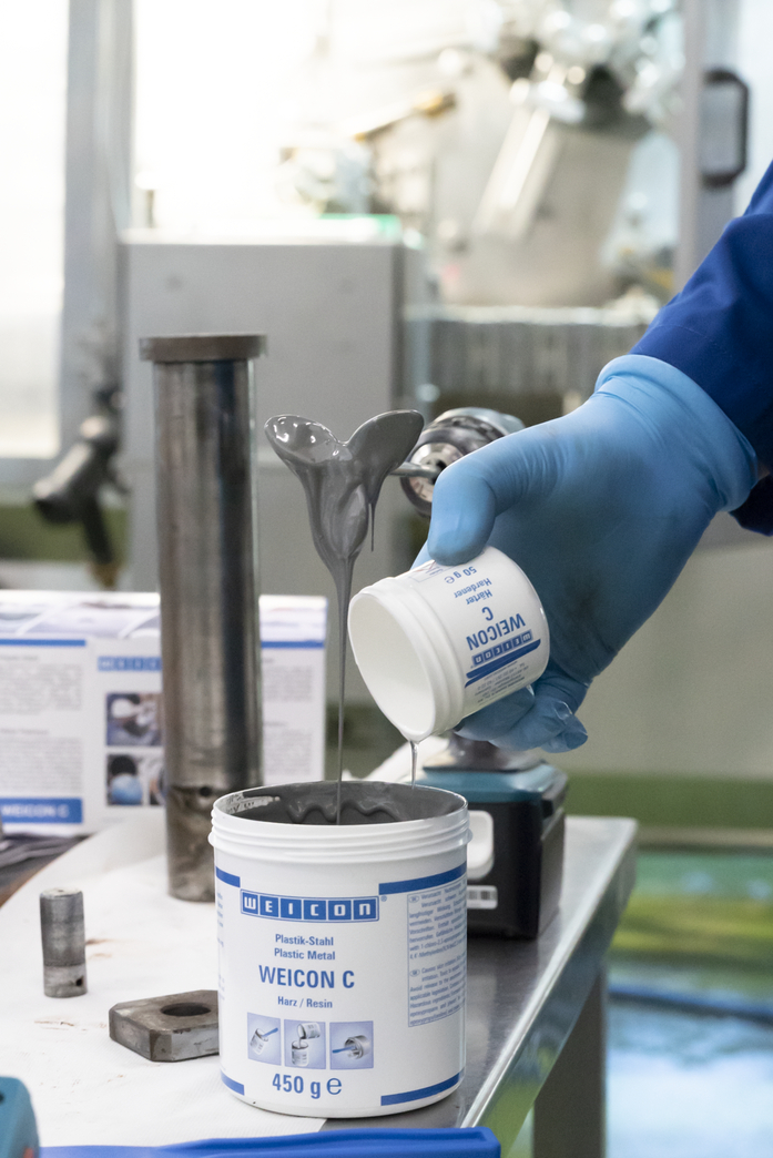 WEICON C adalah sistem resin epoksi yang tahan terhadap suhu dan dapat mengalir terutama untuk penggunaan industri. Perekat ini tidak korosif, anti-magnetik dan mengering secara praktis tanpa penyusutan. WEICON C sangat cocok sebagai perekat untuk aplikasi skala besar, untuk menuangkan cetakan dan untuk produksi perangkat dan perkakas pengikat (misalnya cetakan injeksi). Ini dapat digunakan di sektor pembuatan alat dan cetakan serta di banyak area industri lainnya yang mengalami tekanan panas tinggi.