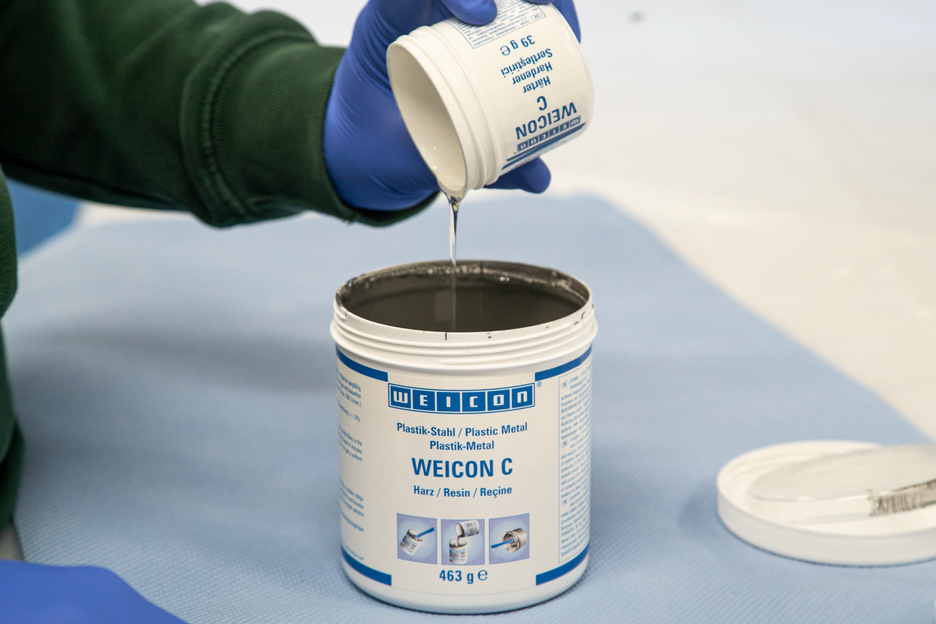 WEICON C adalah sistem resin epoksi yang tahan terhadap suhu dan dapat mengalir terutama untuk penggunaan industri. Perekat ini tidak korosif, anti-magnetik dan mengering secara praktis tanpa penyusutan. WEICON C sangat cocok sebagai perekat untuk aplikasi skala besar, untuk menuangkan cetakan dan untuk produksi perangkat dan perkakas pengikat (misalnya cetakan injeksi). Ini dapat digunakan di sektor pembuatan alat dan cetakan serta di banyak area industri lainnya yang mengalami tekanan panas tinggi.