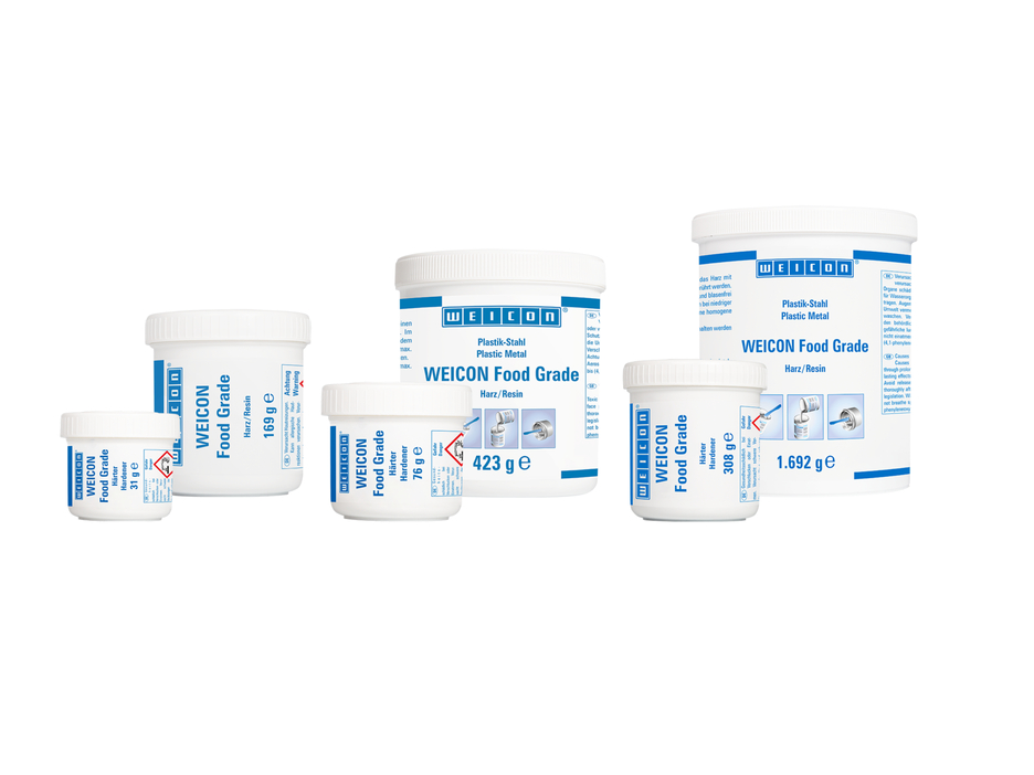 WEICON Food Grade adalah sistem untuk pelapisan permukaan dan telah disetujui oleh Ruhr District Institute of Hygiene untuk kontak dengan makanan berair dan berlemak hingga 70 ° C. Ini digunakan baik untuk melapisi permukaan dan sebagai perekat. Sistem resin epoksi 2 komponen yang dapat dialirkan memiliki proporsi pengisi mineral halus yang tinggi. Lapisan ini mudah diaplikasikan dan melekat pada berbagai macam permukaan, bahkan di bawah tekanan mekanis. Food Grade memiliki ketahanan kimia yang sangat baik dan cocok untuk melapisi berbagai macam komponen seperti pompa, sistem konveyor, sekrup pengangkat, hopper, tangki, dan pipa; Karena persetujuan makanannya, pelapis ini cocok untuk aplikasi di sektor air minum, di industri minuman, di industri farmasi, di industri kimia, di dapur komersial, toko roti, atau dalam produksi makanan; WEICON Food Grade cocok digunakan sendiri atau dikombinasikan dengan salah satu jenis Logam Plastik WEICON lainnya untuk pembangunan sistem;