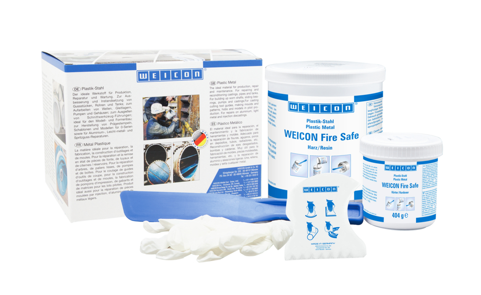 WEICON Fire Safe adalah perekat 2 komponen berwarna putih dan tahan api yang dapat diaplikasikan dengan spatula. Sangat cocok untuk aplikasi di sektor proteksi kebakaran dan digunakan untuk mengencangkan keramik pelindung keausan atau komponen baja ke berbagai macam permukaan, seperti logam, beton, atau bahan serupa. Sistem perekatnya sangat kuat, keras-fleksibel setelah diawetkan dan telah dimodifikasi agar tahan benturan. Perekat tidak menjadi rapuh bahkan dalam kondisi yang paling ekstrem sekalipun. Perekat ini menunjukkan sifat perlindungan keausan yang baik jika terjadi erosi partikel, memiliki ketahanan kimiawi yang baik dan bebas pelarut. WEICON Fire Safe mengandung zat aditif yang dapat memadamkan diri sendiri dalam beberapa detik. Produk ini telah diuji sesuai dengan DIN EN ISO 340 di DMT di Dortmund dan berhasil lulus uji; Perekat khusus dapat digunakan di banyak area aplikasi, misalnya untuk mengencangkan penghalang api dan penutup atau komponen dengan persyaratan tahan api. Fire Safe dapat digunakan di berbagai area industri, misalnya di kilang, produksi semen, industri kimia, konstruksi tangki, konstruksi katup, atau teknologi isolasi;