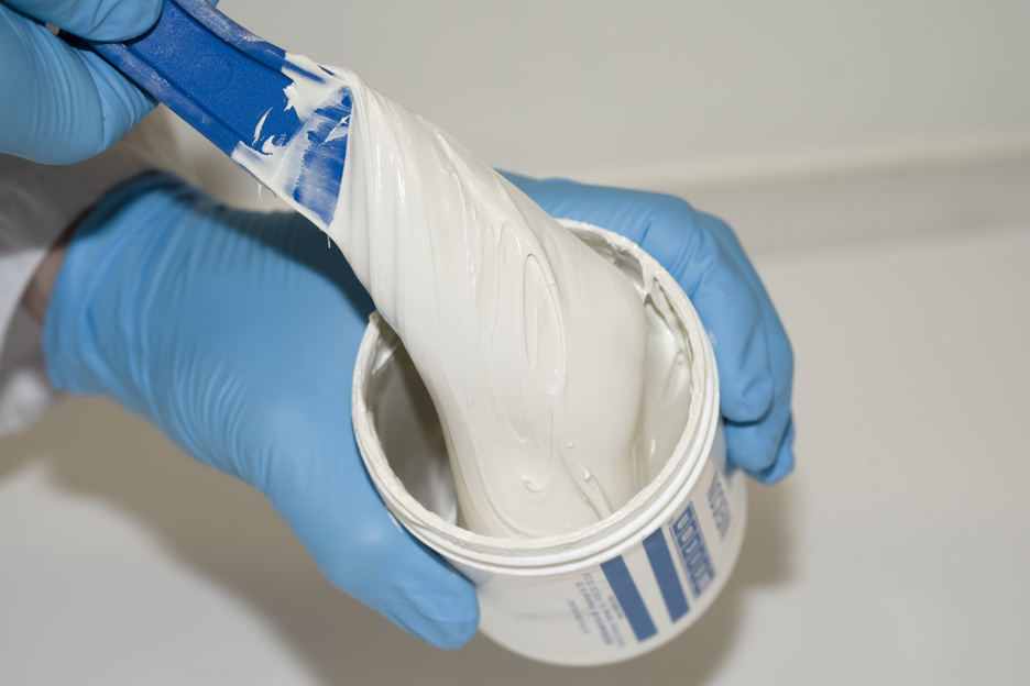 Pasta, berisi mineral, melekat pada permukaan yang basah dan lembab