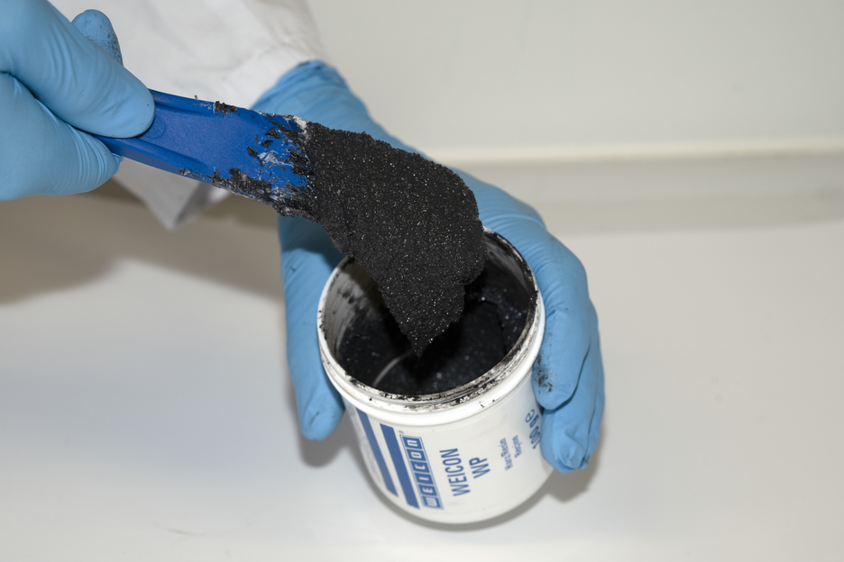 WEICON WP berfungsi sebagai perlindungan untuk permukaan yang sangat tertekan. Lapisan dengan sistem resin epoksi menawarkan kekuatan tinggi terhadap keausan dan abrasi dan sangat tahan terhadap bahan kimia. Plastic Metal WEICON WP mencegah kehilangan logam dan menggantikan paduan tahan aus yang telah diaplikasikan sebelumnya, ubin keramik dan lapisan karet serta lapisan logam yang dilas. Ini dapat digunakan baik untuk regenerasi permukaan logam yang aus atau sebagai lapisan tahan aus. Tingkat perlindungan yang sangat tinggi dicapai ketika keausan disebabkan oleh partikel yang menghantam ke samping.