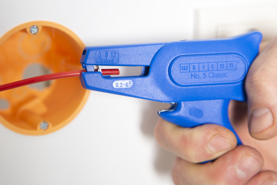 WEICON Wire Stripper No. 5 Klasik cocok untuk mengupas semua konduktor beruntai dan padat dari 0,2 - 6,0 mm². Pemotong samping yang dapat diakses dengan baik terintegrasi dalam alat ini, yang cocok untuk diameter kabel hingga 2 mm. Pisaunya dapat diganti. Berat Wire Stripper No. 5 yang ringan memastikan kerja yang bebas dari rasa lelah.