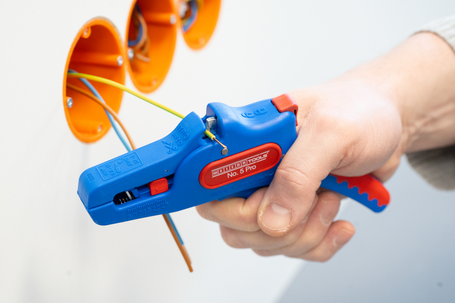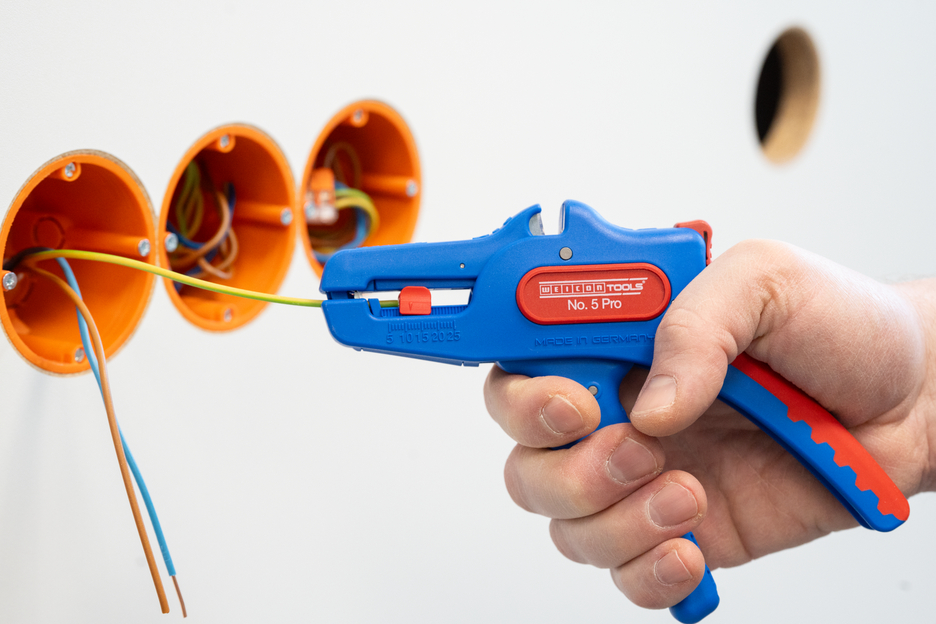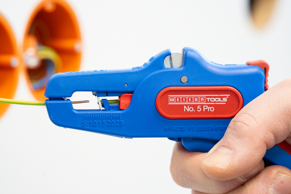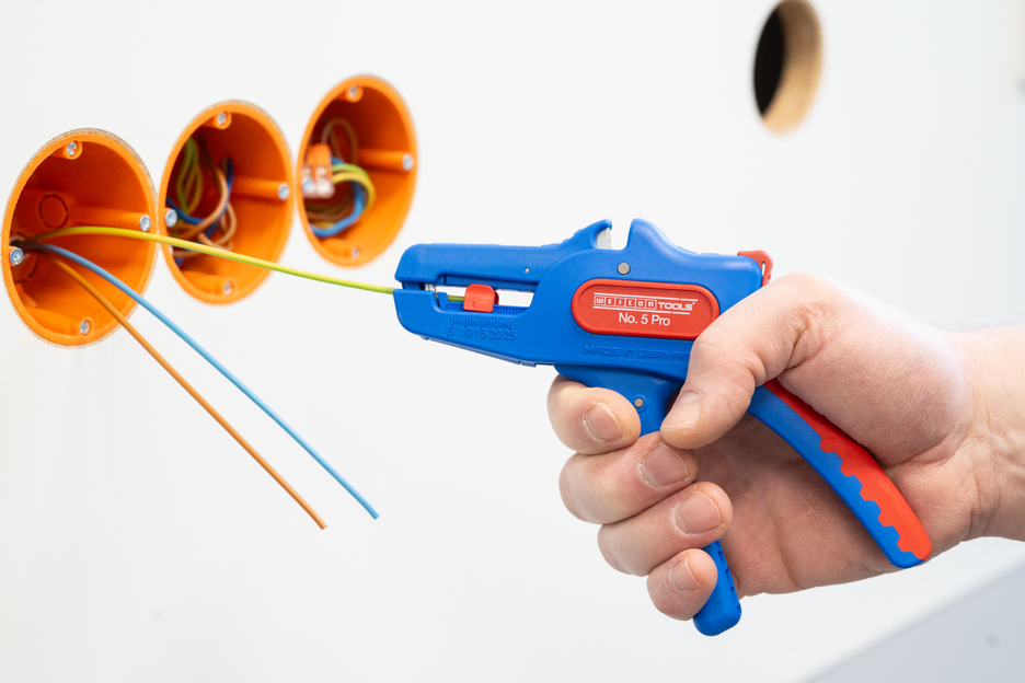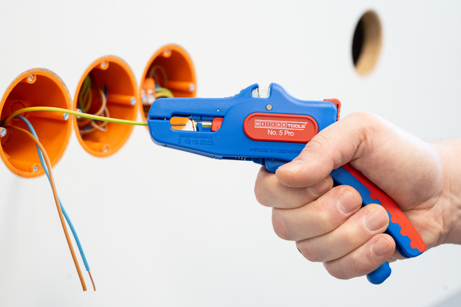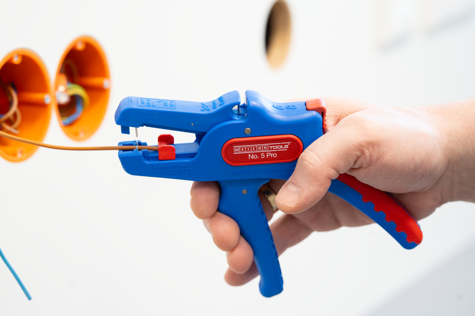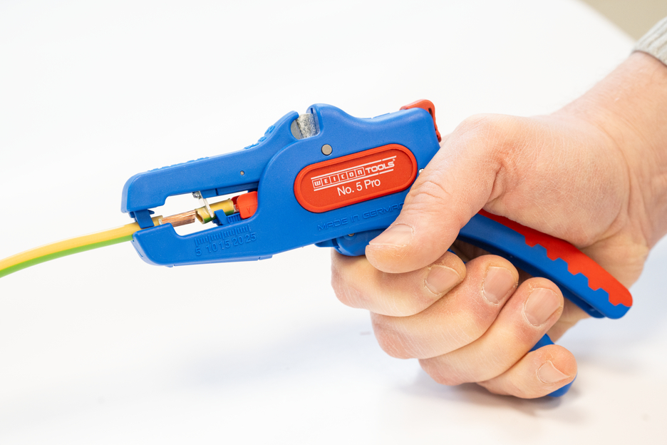 Wire Stripper otomatis dapat digunakan untuk mengupas semua konduktor untai dan padat dari 0,2 hingga 16 mm². Lenght Stop yang dapat disesuaikan dari 5 hingga 25 mm memungkinkan pekerjaan yang sangat tepat dan akurat. Lenght Stop dapat dilepas, jika diperlukan. Pengupas kawat secara otomatis menyesuaikan diri dengan penampang konduktor yang diperlukan - jadi tidak diperlukan penyesuaian manual. Alat pengupasan dilengkapi dengan pemotong samping yang terintegrasi, yang cocok untuk konduktor yang terbuat dari tembaga dan aluminium hingga diameter tiga milimeter. Berkat desain alat yang ramping, alat pengupas ini juga dapat digunakan di area kerja yang sulit diakses, seperti di lemari sakelar. Mekanisme alat pengupas berjalan sangat mulus dan telah terbukti tahan lama serta dapat diandalkan dalam berbagai pengujian. Pengupas kawat memiliki gagang multi-komponen yang tidak licin dengan desain "Ice Crack" berwarna biru-merah. Pengupas kawat memiliki lubang untuk memasang tali pengikat untuk perlindungan dari jatuh dan dilengkapi dengan permukaan pelabelan untuk dapat menyesuaikan alat. Selain itu, alat ini memiliki mekanisme penguncian untuk penyimpanan yang hemat tempat.