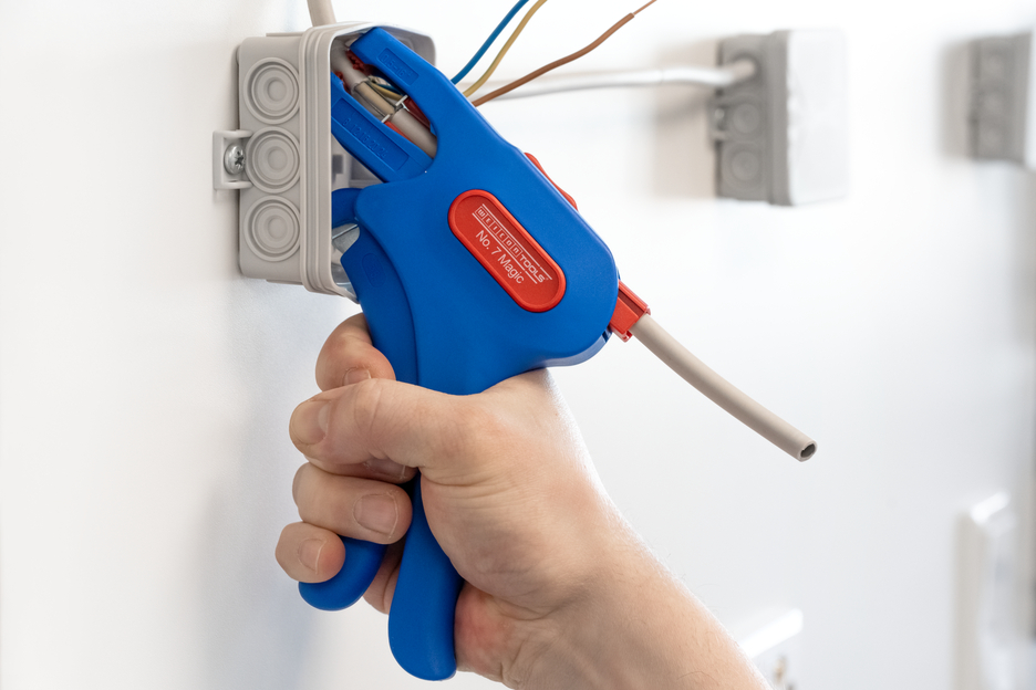 Serba bisa untuk pengupasan kabel I Bekerja dengan tepat berkat skala panjang optik I Pemotong samping yang terintegrasi dan dapat diakses dengan baik hingga 3 mm Ø I Untuk berbagai jenis kabel yang berbeda dalam instalasi rumah