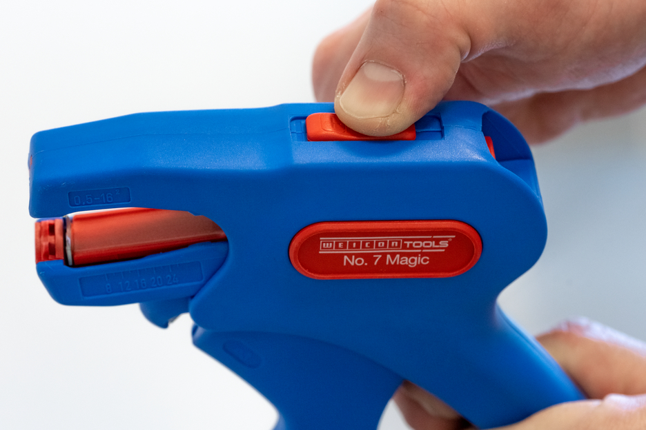 WEICON Wire Stripper No. 7 Magic adalah pengupas kabel otomatis yang kuat dan ergonomis. Sistem pemindaian otomatis dapat disesuaikan dengan berbagai jenis dan diameter kabel dengan penyesuaian halus 5 kali lipat. Wire Stripper No. 7 Magic diperkuat dengan fiberglass ini memiliki skala panjang visual dari 8 - 24mm. Dengan cara ini, semua kabel pilin fleksibel dari 0,5 mm² - 16 mm² dan kabel bundar padat dari 0,5 mm² - 10 mm² dilucuti secara efisien dan merata. Pengupas ini juga cocok untuk PVC.